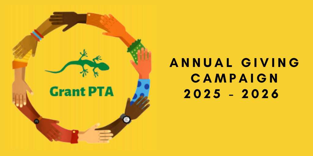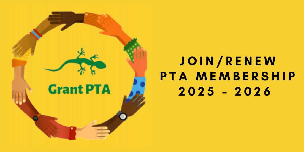 Join/Renew your membership to the Grant PTA for the 2025-2026 school year! We encourage each and every parent, guardian and faculty member to join the PTA. Have your voice heard, get updates direct from Principal Fuhrer, make friends and play an active role in your kids’ lives!